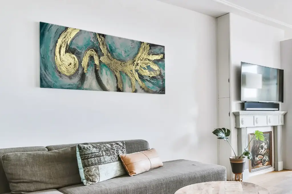 Außerdem sollte abstrakte Kunst mit anderen Einrichtungselementen harmonieren. Wenn das Kunstwerk mutig und lebhaft ist, sollte es mit neutralen Möbeln kombiniert werden, um ein visuelles Durcheinander zu vermeiden, während ein dezenteres Kunstwerk mit Statement-Möbeln oder -Accessoires ergänzt werden kann, um eine dynamische und doch kohärente Ästhetik zu erhalten.