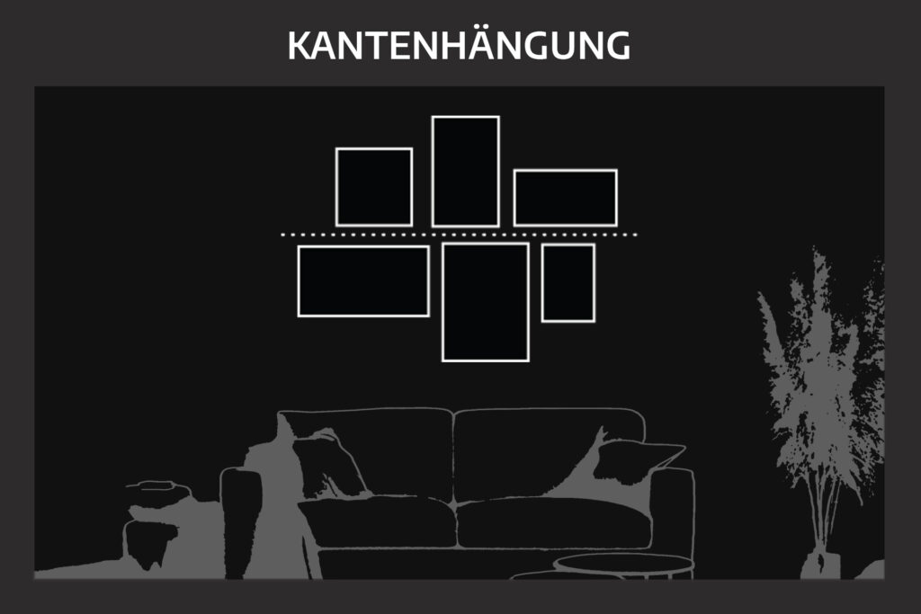 Unkomplizierter als die Petersburger Hängung gestaltet sich die Kantenhängung, die auch für niedrige Wände geeignet ist. Optimal ist sie für die Anbringung mehrerer Fotografien in unterschiedlicher Größe. Mit unseren Ratschlägen kann nichts mehr schiefgehen: