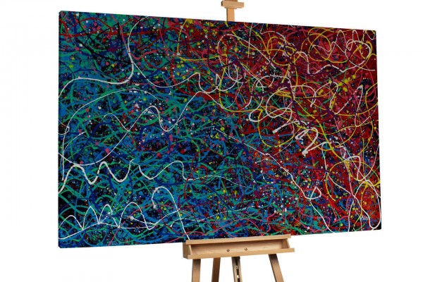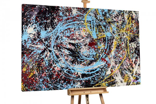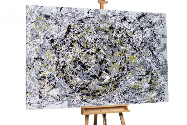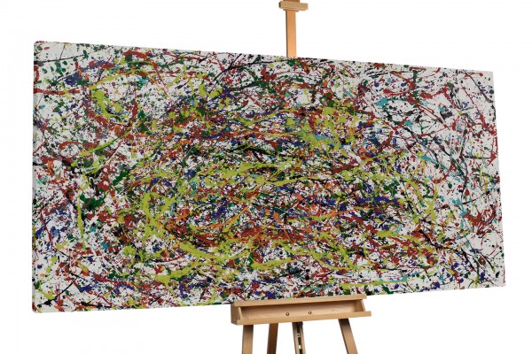 1947 stellte Jackson Pollock seine berühmten „Drip Paintings“ vor, die zu den originellsten Werken des Jahrhunderts gehören und die amerikanische Kunst für immer veränderten. Für Jackson Pollocks „Action Painting“ wurden die meisten seiner Leinwände entweder auf den Boden oder an die Wand gelegt, anstatt auf einer Staffelei befestigt zu werden: „Meine Malerei entsteht nicht auf der Staffelei. Ich brauche den Widerstand einer harten Oberfläche. Auf dem Boden fühle ich mich wohler.Ich fühle mich näher dran, bin mehr ein Teil des Bildes.“ Von da an verwendete Pollock eine Methode, bei dem er die Farbe aus der Farbdose tropfen ließ. Diese Art, Farbe tropfen zu lassen, brachte ihm den Namen „Jack the Dripper“ ein. Anstatt den traditionellen Pinsel zu verwenden, fügte er seinen Bildern mit Messern, Stäben und sogar Spritzen Tiefe hinzu.